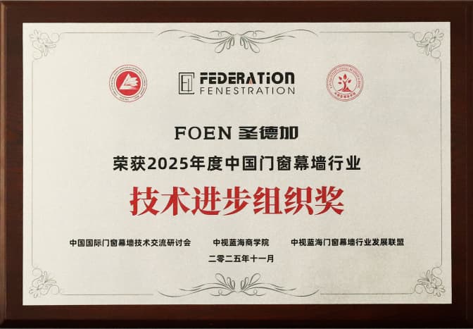 El premio «Organización del Progreso Tecnológico» representa un alto reconocimiento a los esfuerzos de FOEN Shengdejia en innovación tecnológica y el establecimiento de su sistema de I+D. Este galardón honra el desempeño sobresaliente de la empresa en la investigación y el desarrollo de tecnologías de ventanas y muros cortina, la innovación de procesos y la transformación de los resultados de la investigación en aplicaciones prácticas, destacando la formidable fortaleza de FOEN Shengdejia.